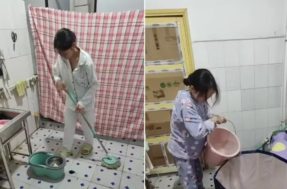 Yang, uma jovem de 18 anos, mora em banheiro de loja de móveis na China.