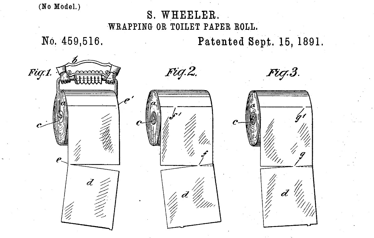 Em 1891, Seth Wheeler, um inventor americano, registrou a patente do rolo de papel higiênico. A documentação não apenas descreve o produto, mas também orienta que o papel deve ser desenrolado pela parte superior, afastado da parede.