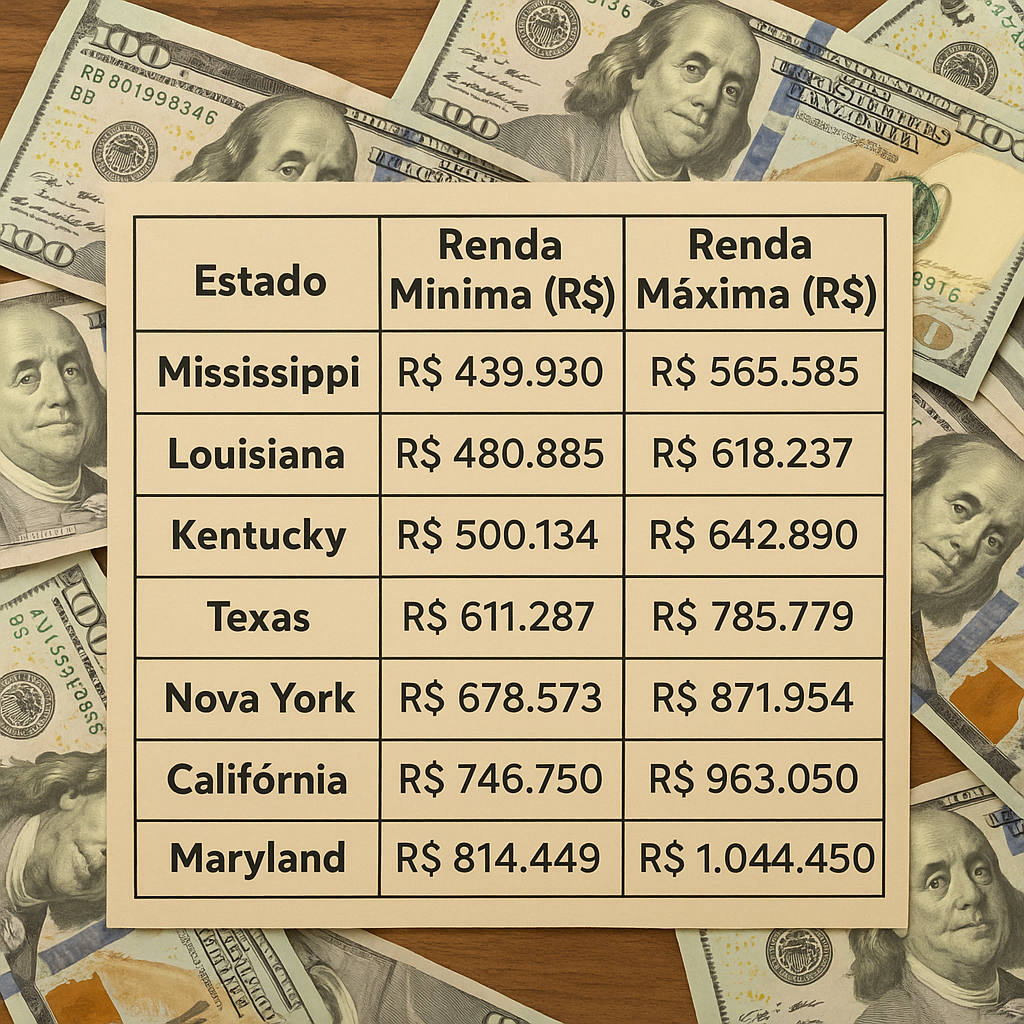 Aqui vai um panorama das faixas de renda necessárias em alguns estados, com os valores já convertidos para o real brasileiro.