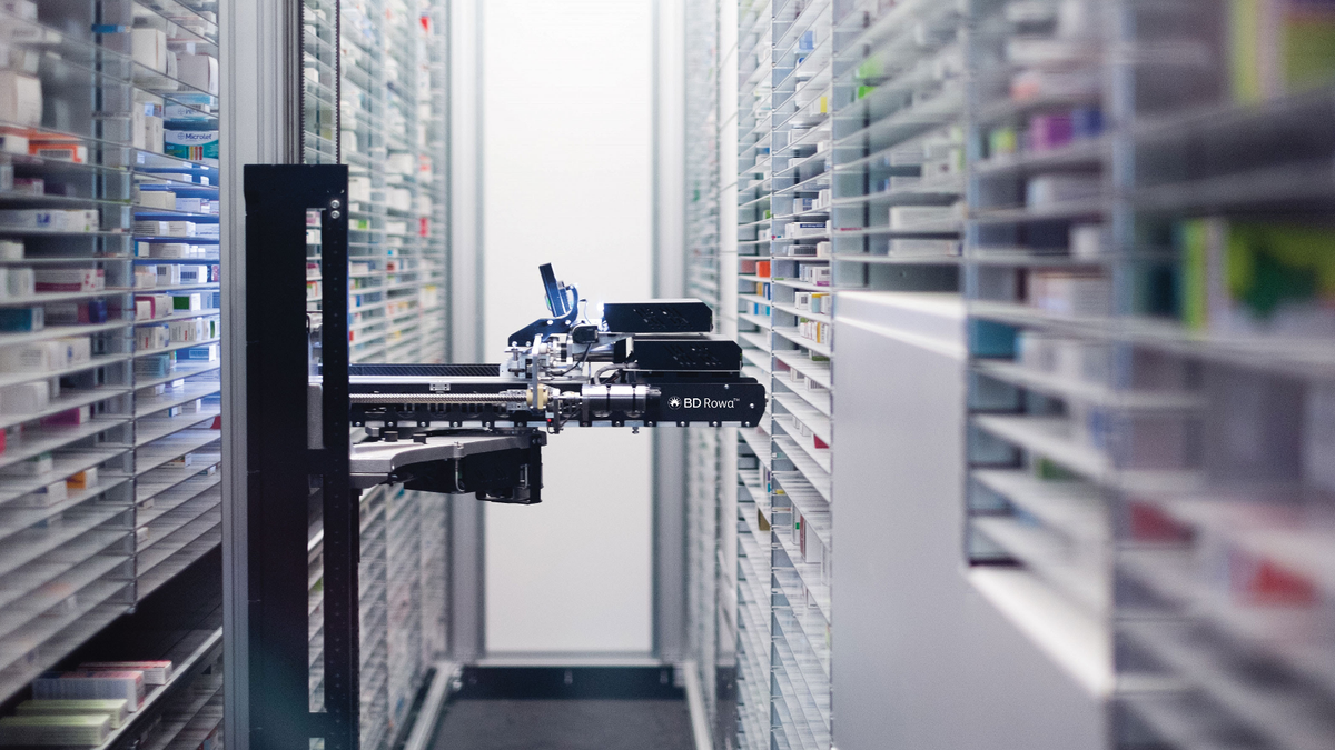 O BD Rowa, implementado pela Drogamais Bandeirantes, automatiza completamente o processo de seleção e entrega de medicamentos. Clientes finalizam suas compras online e, com um QR Code, acessam o robô para retirar seus produtos.