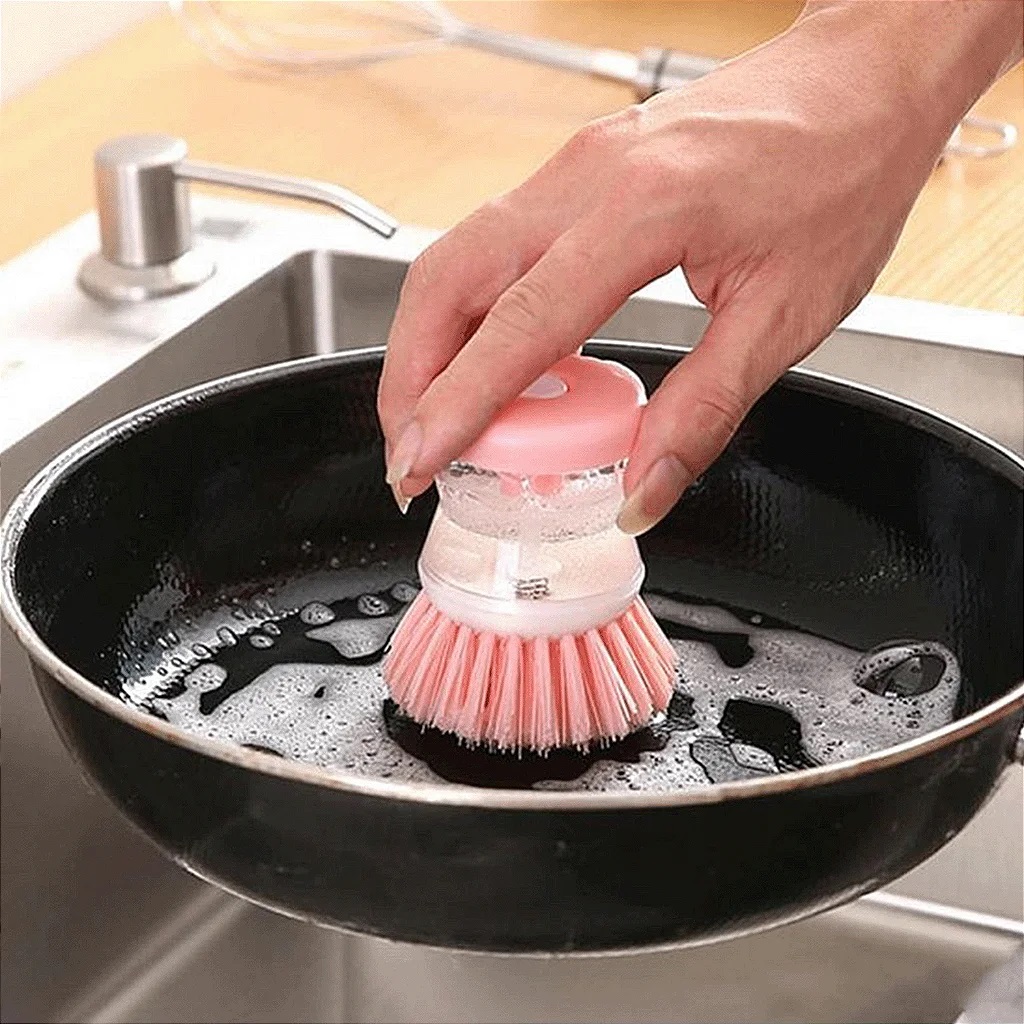 Outro ponto positivo é a eficiência na limpeza: as cerdas rígidas da escova alcançam facilmente cantos difíceis, removem crostas e sujeiras secas com menos esforço e ainda protegem as mãos do contato direto com a gordura.