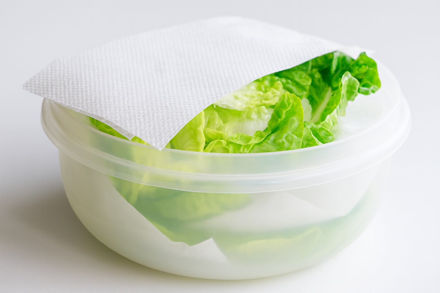 Um dos métodos mais eficazes consiste em deixar a alface em seu saco original, adicionando um papel toalha absorvente.