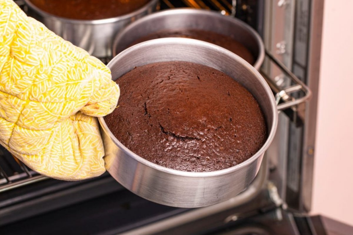 Abrir a porta do forno nos minutos iniciais pode arruinar o crescimento do bolo. Durante esse estágio, a massa ainda está firmando-se e o fermento, expandindo. Qualquer variação térmica pode fazer o bolo afundar no centro.